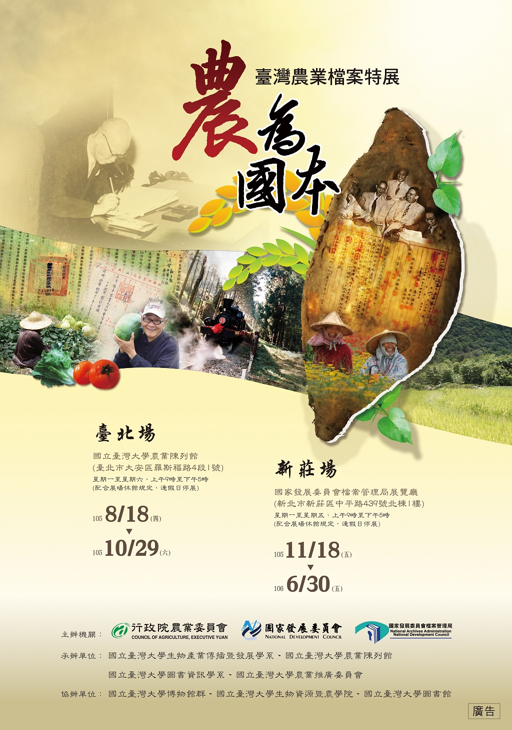 行政院農業委員會與國家發展委員會共同辦理「農為國本-臺灣農業檔案特展」,